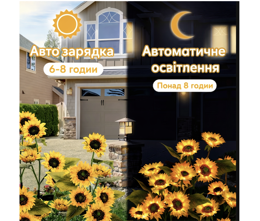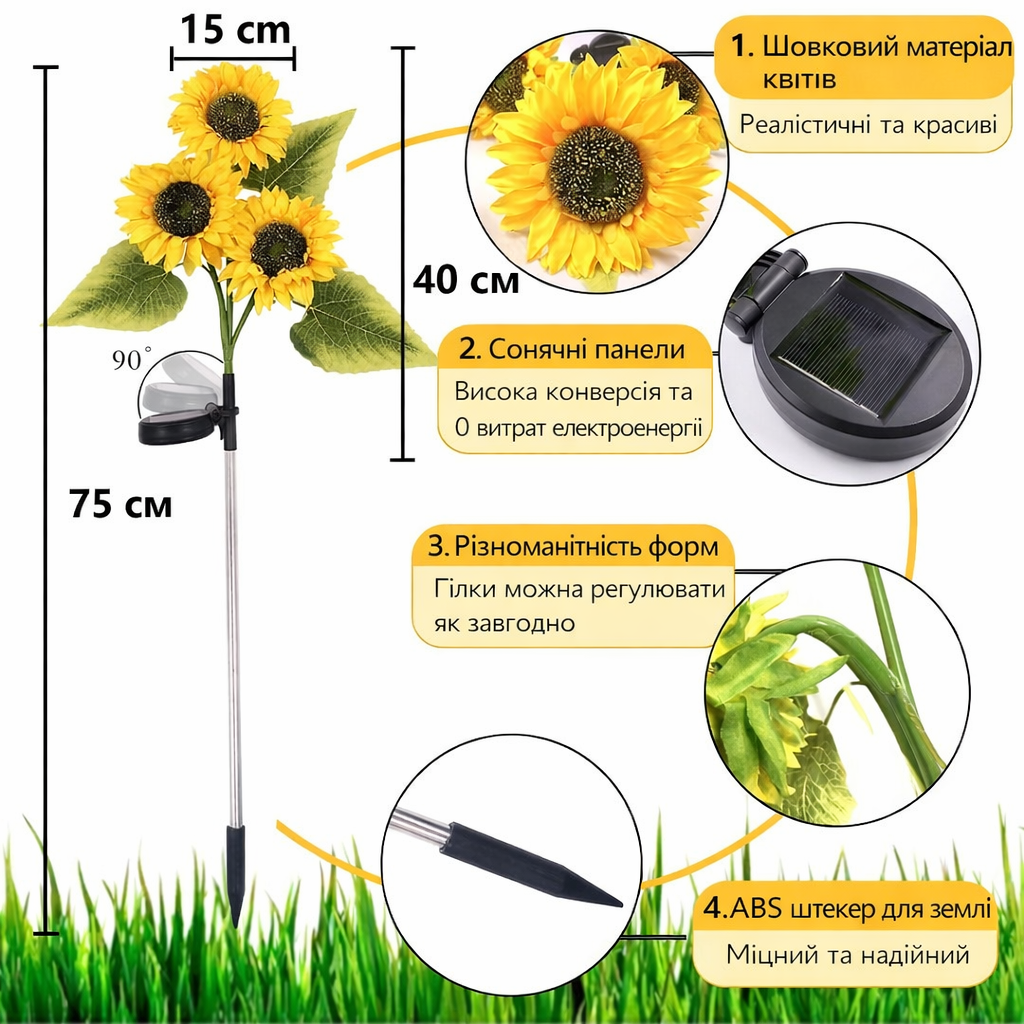 Новий газонний світильник "Соняшник" на сонячній батареї, ідеальне рішення для ландшафтного підсвічування доріжок, квіткових клумб, саду і т.д.